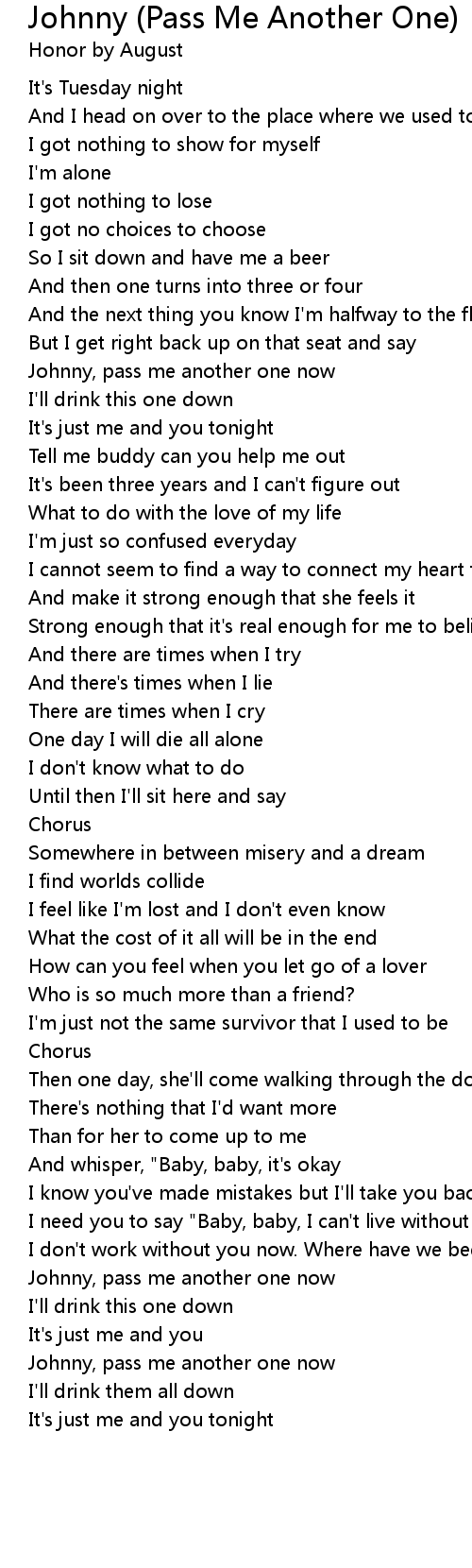 Johnny, pass me another one now |