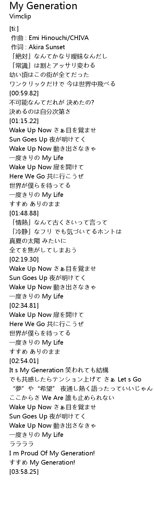 | [03:09.38] | It s My Generation 笑われても結構 |