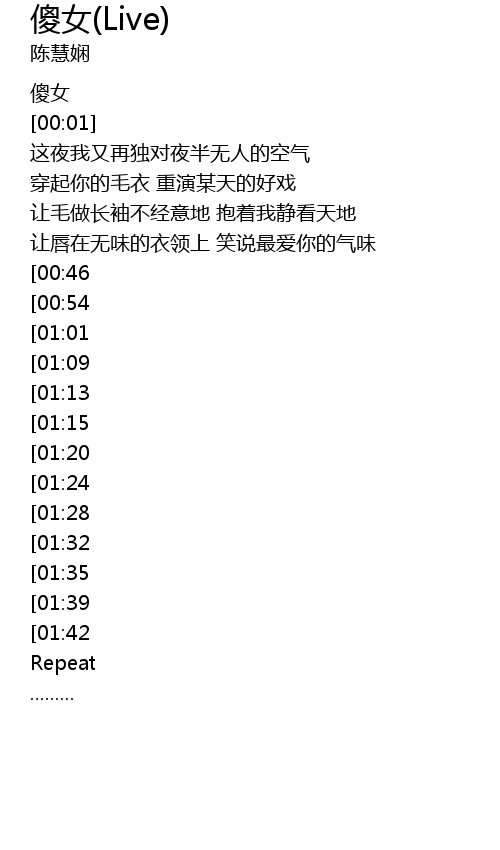 | [03:00][01:42] | 穿起你那无言毛衣当跟你接近 |