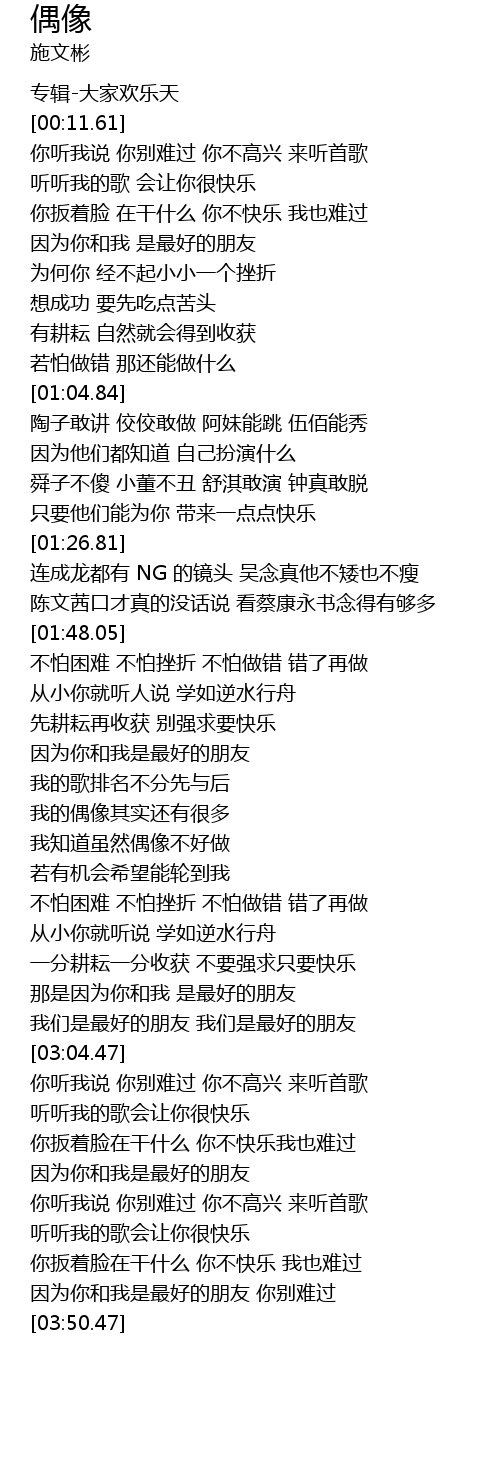 | [03:43.77] | 因为你和我是最好的朋友 你别难过 |