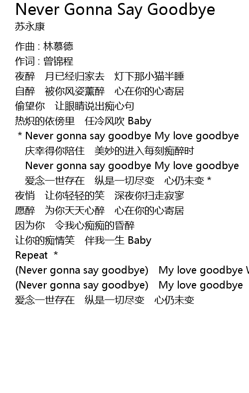 | *Never gonna say goodbye My love goodbye | |