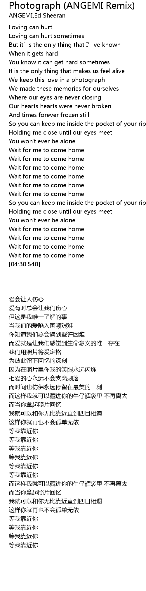 | [04:28.070] | Wait for me to come home |