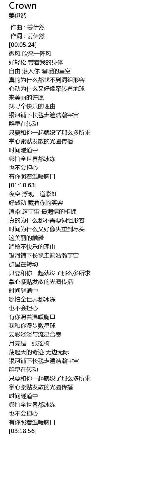 | [00:00.00] | 作曲 : 姜伊然 |