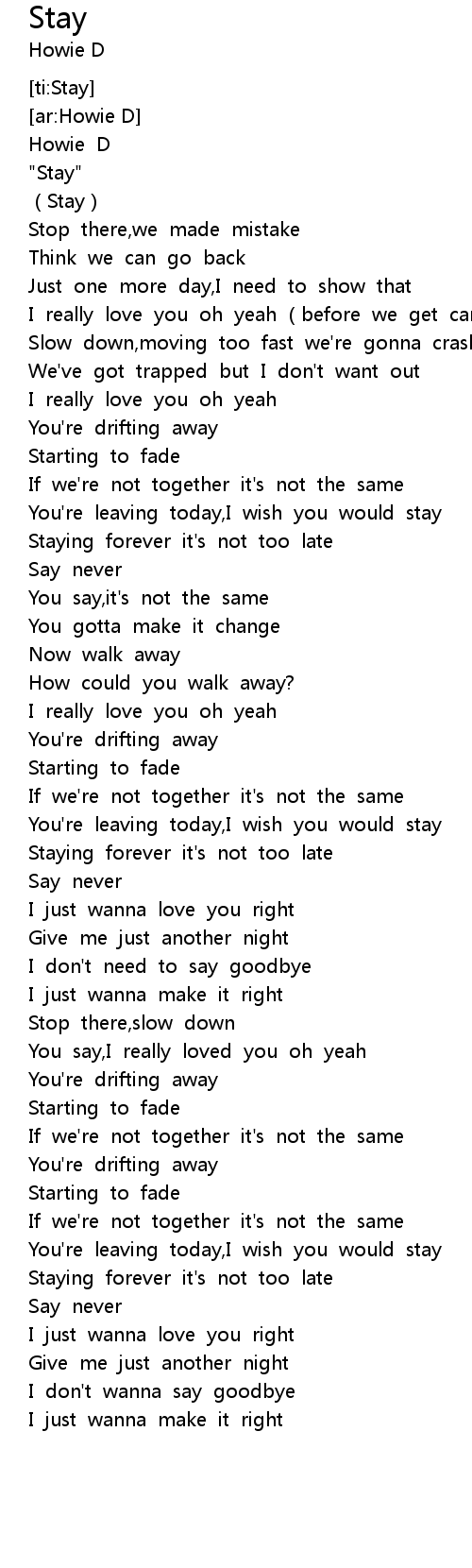 | [01:44.87] | You're leaving today,I wish you would stay |