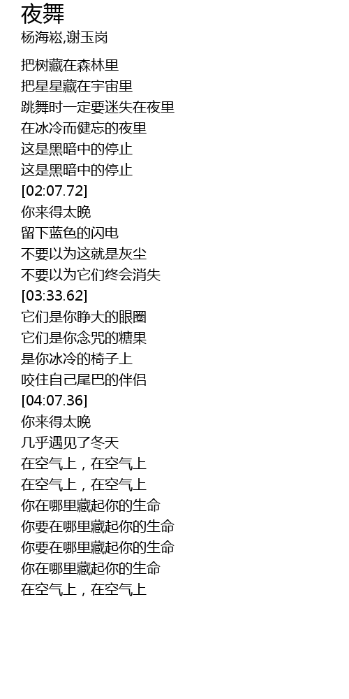 | [02:02.51] | zhè shì hēi àn zhōng de tíng zhǐ |
