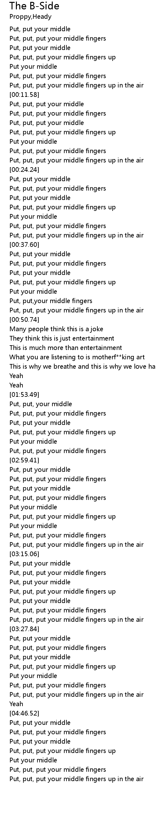 | [04:13.89] | Put, put, put your middle fingers up |