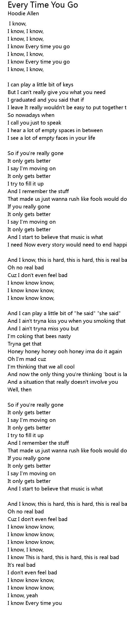 I know Every time you go |