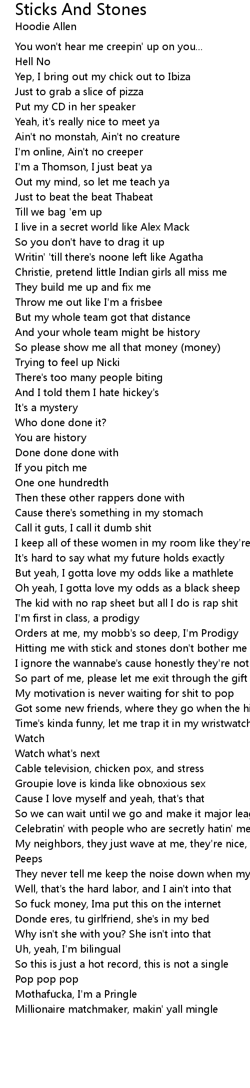 Hitting me with stick and stones don't bother me |