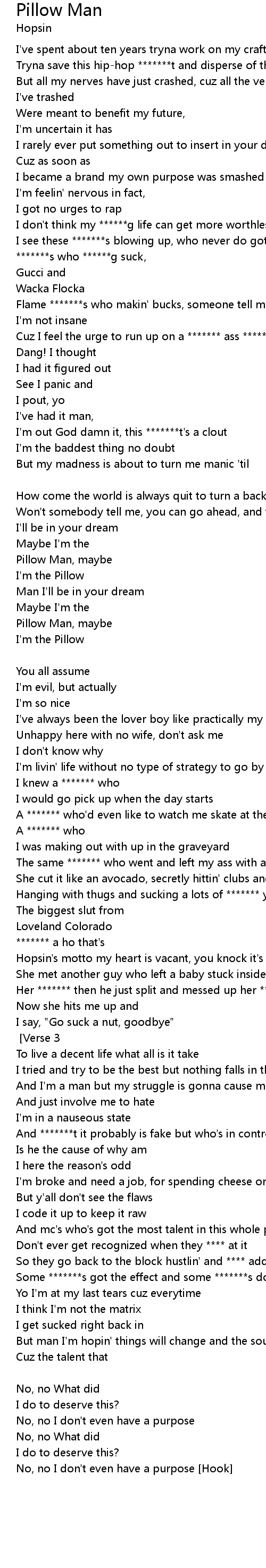 | No, no I don't even have a purpose [Hook] |