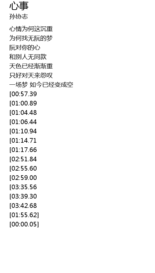| [03:29.20][02:59.00][01:34.80] | 无奈阮的感情放这呢重 |