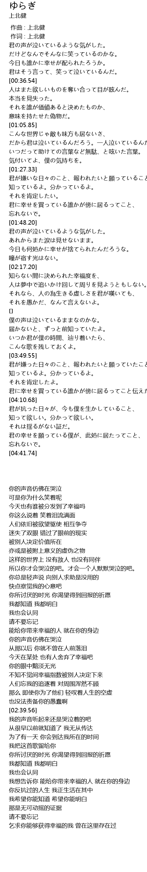 | [04:29.36] | 乞求你能够获得幸福的我 曾在这里存在过 |