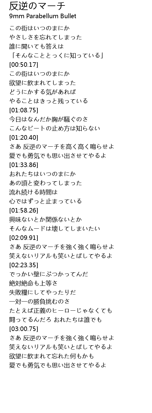 | [02:10.61] | さあ 反逆のマーチを強く強く鳴らせよ |