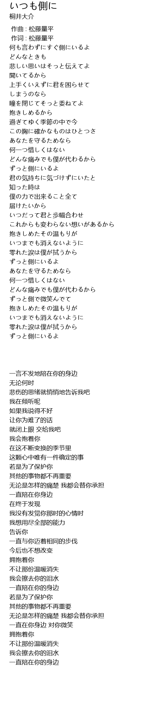 | [00:14.60] | 何も言わずにすぐ側にいるよ |