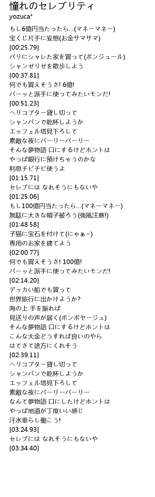| [01:36.72] | もし100億円当たったら…(マネーマネー) |