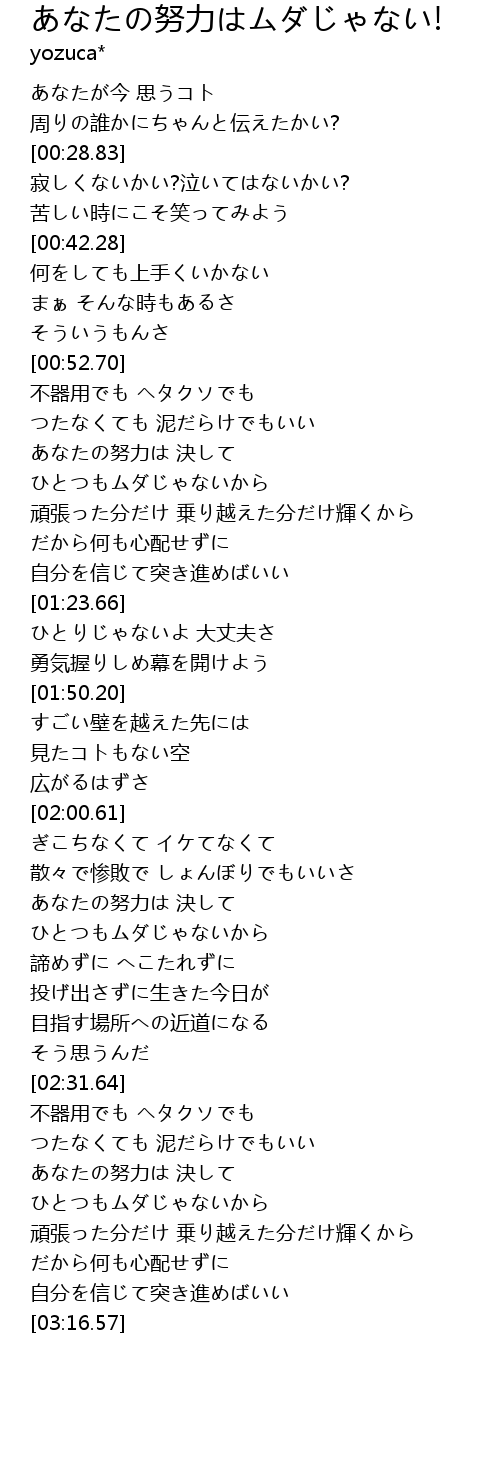 | [03:11.06] | 自分を信じて突き進めばいい |