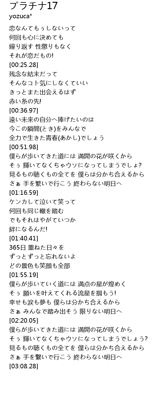 | [03:02.82] | さぁ 手を繋いで行こう 終わらない明日へ |