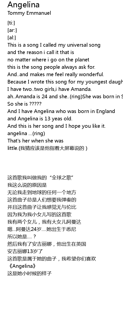 | [00:32.44] | and Angelina is 13 yeas old. |
