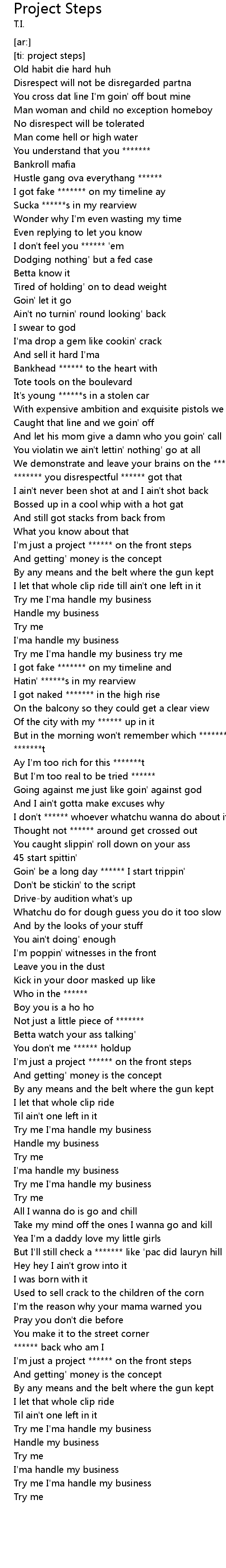 | [03:18.18] | I'm just a project ****** on the front steps |