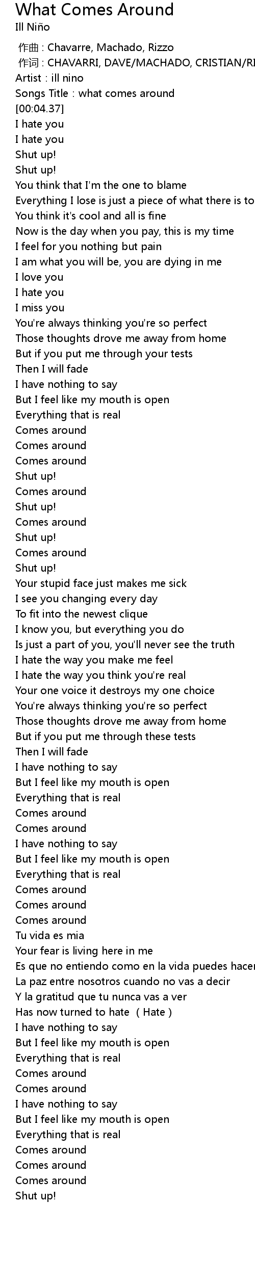 | [00:02.63] | Songs Title: what comes around |