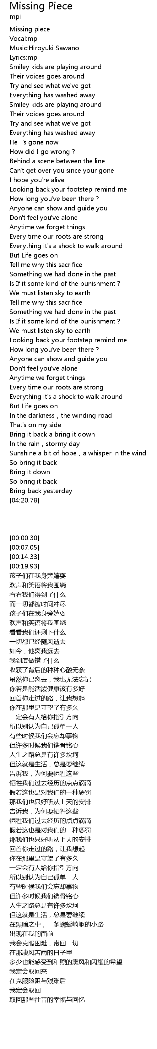 | [00:14.33] | Music:Hiroyuki Sawano |