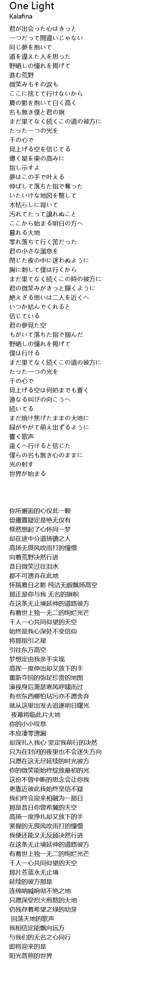 | 歌曲 | One Light |