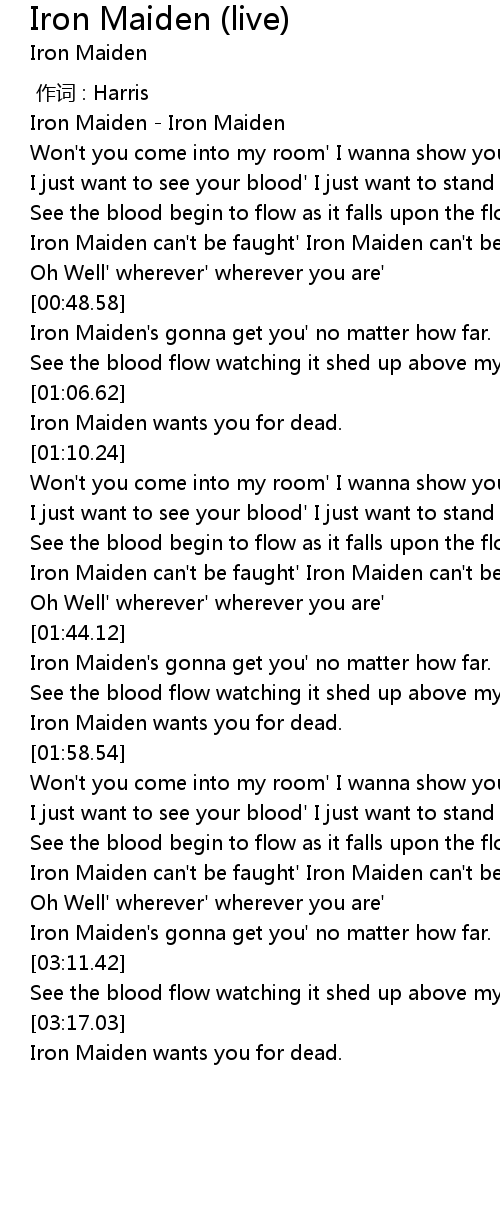 | [03:07.75] | Iron Maiden' s gonna get you' no matter how far. |
