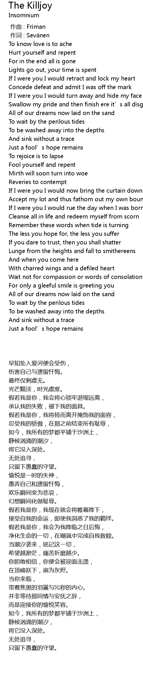 | 歌曲 | The Killjoy |