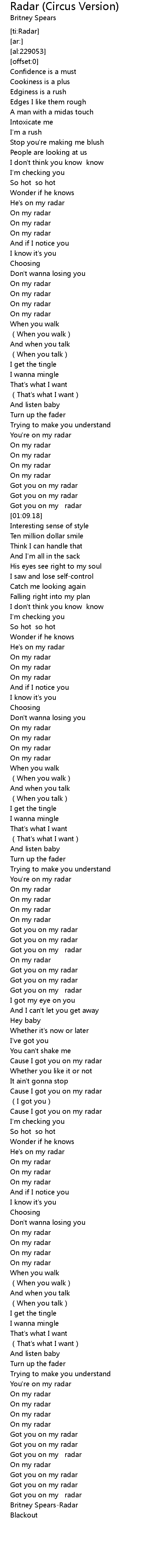 | [03:19.74] | Britney SpearsRadar |