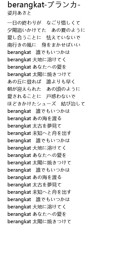 | [04:14.45] | berangkat あなたへの愛を |