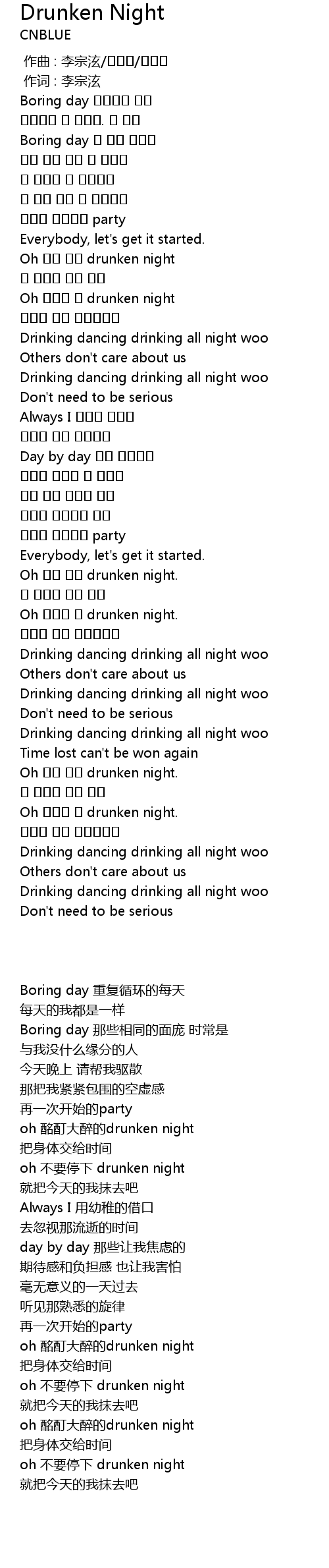 | [02:38.860] | Oh 멈추지 마 drunken night. |