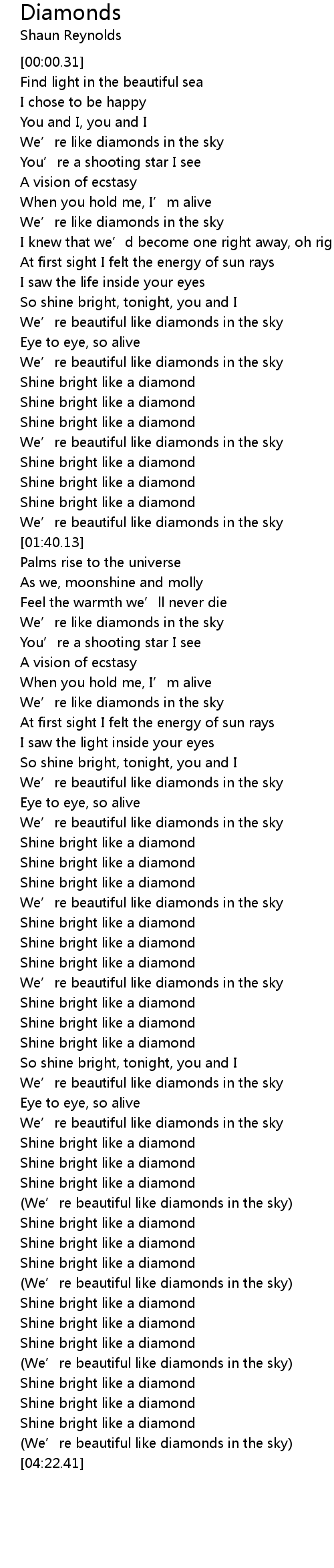 | [03:29.44] | We’re beautiful like diamonds in the sky |