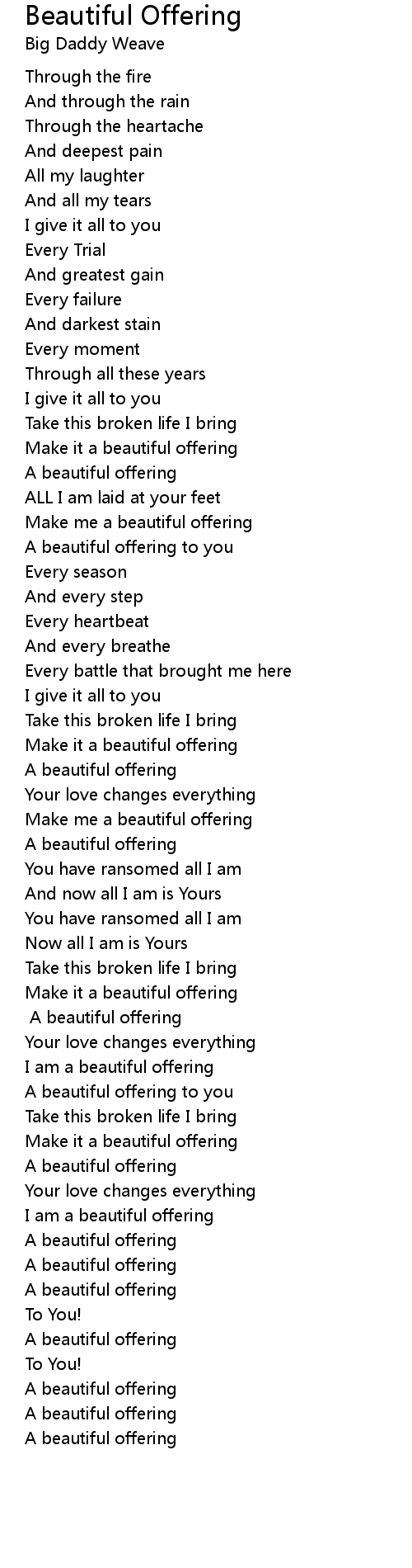 Beautiful Offering 歌词