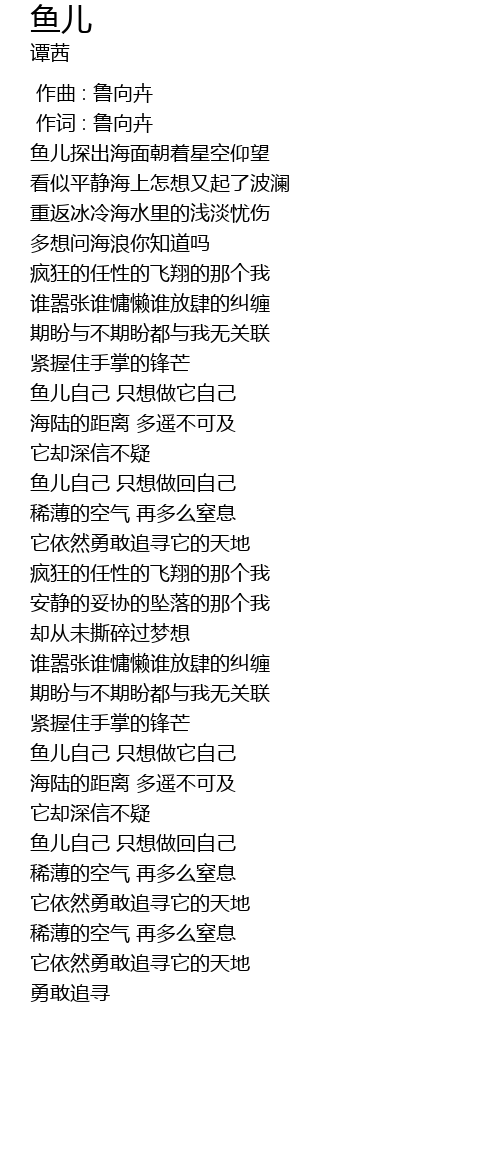 | [00:00.00] | 作词 : 鲁向卉 |
