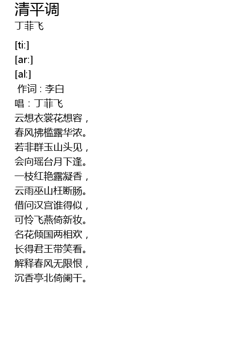 | [00:00.00] | 作词 : 李白 |
