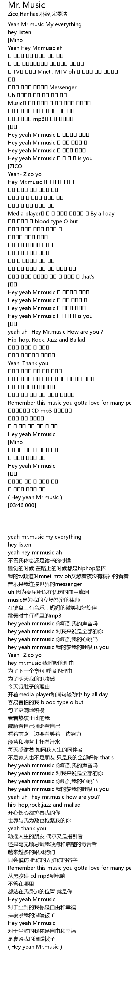 | [00:50.890] | Hey yeah Mr.music 내 목소리가 들리니 |