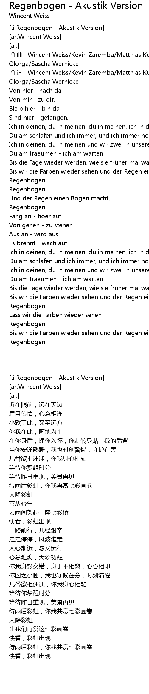 | [ti:Regenbogen - Akustik Version] | |