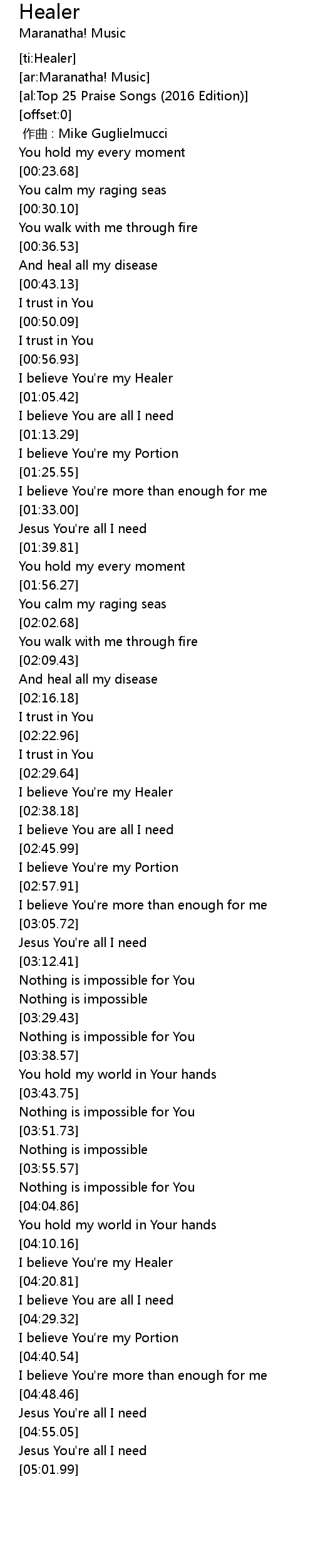 | [04:16.26] | I believe You're my Healer |
