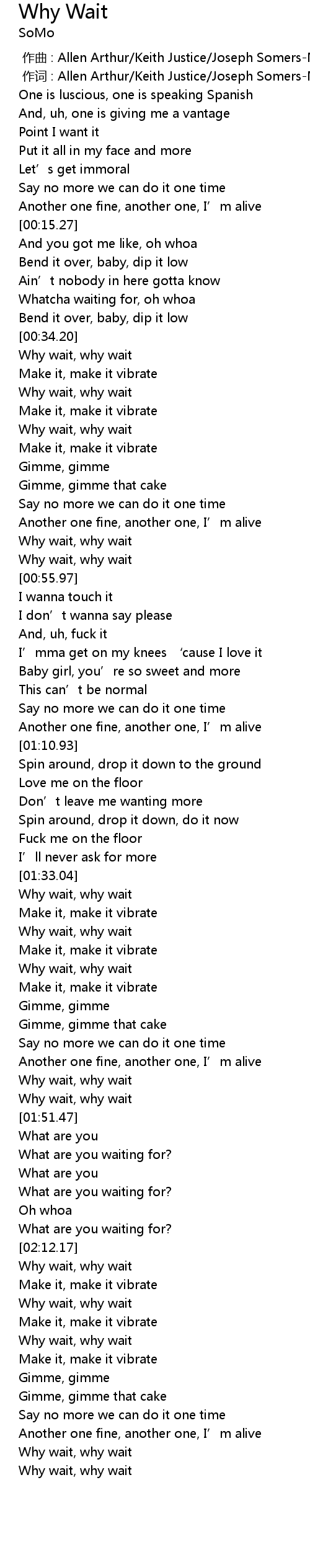 | [02:14.84] | Why wait, why wait |