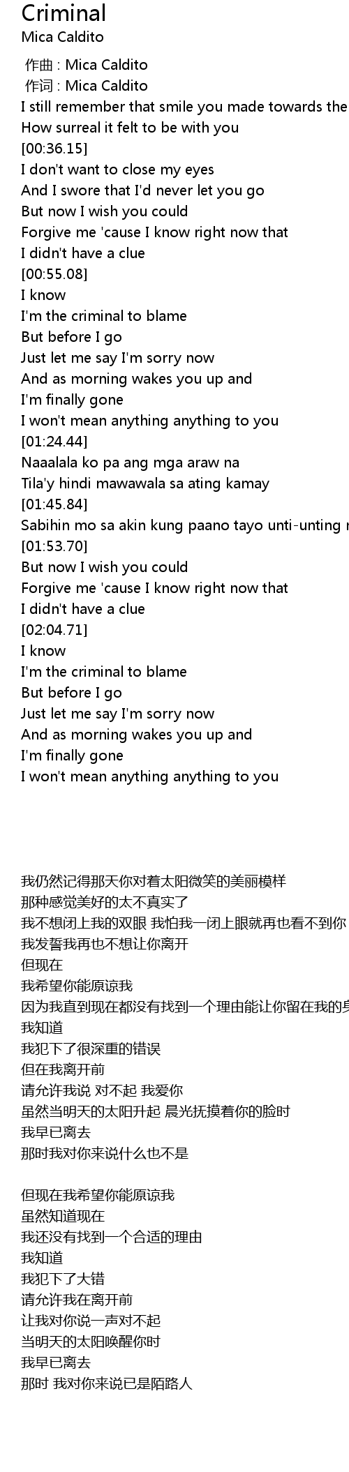 | [00:00.00] | zuò qǔ : Mica Caldito |