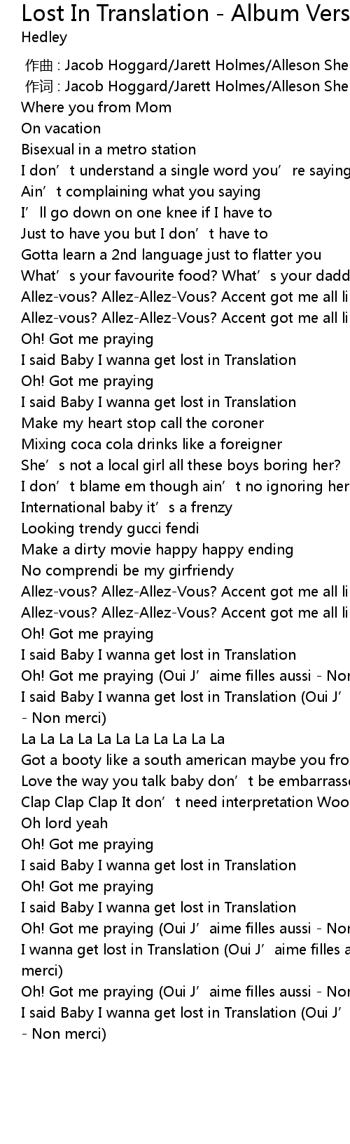 | [01:34.59] | I said Baby I wanna get lost in Translation Oui J' aime filles aussi Non merci |