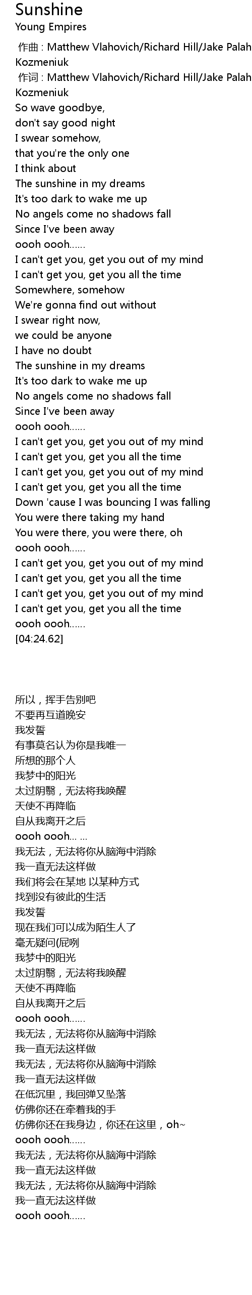 | [00:01.00] | 作词 : Matthew Vlahovich/Richard Hill/Jake Palahnuk/Stephen Kozmeniuk |
