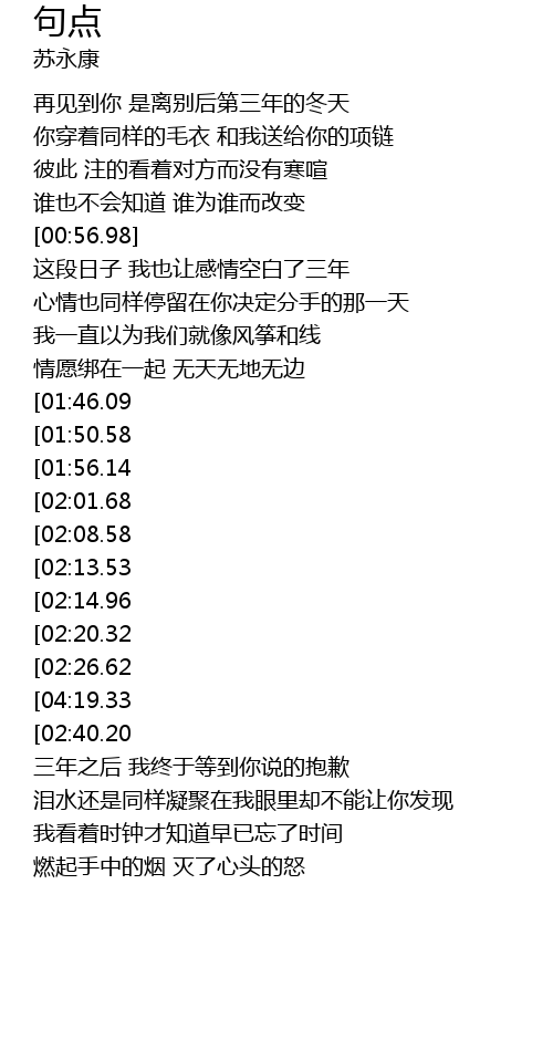 | [02:49.23] | 三年之后 我终于等到你说的抱歉 |