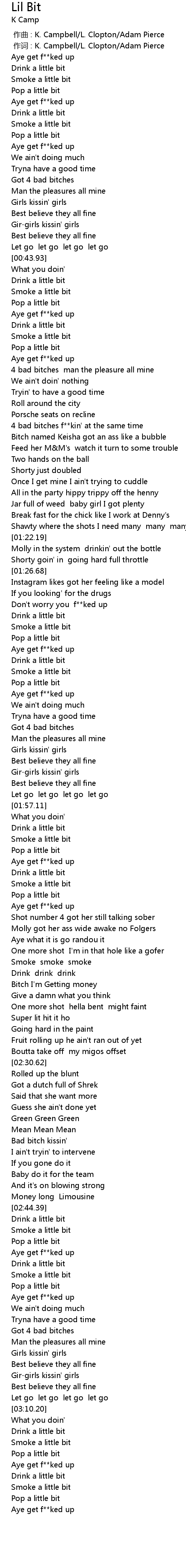 | [01:04.27] | Bitch named Keisha got an ass like a bubble |