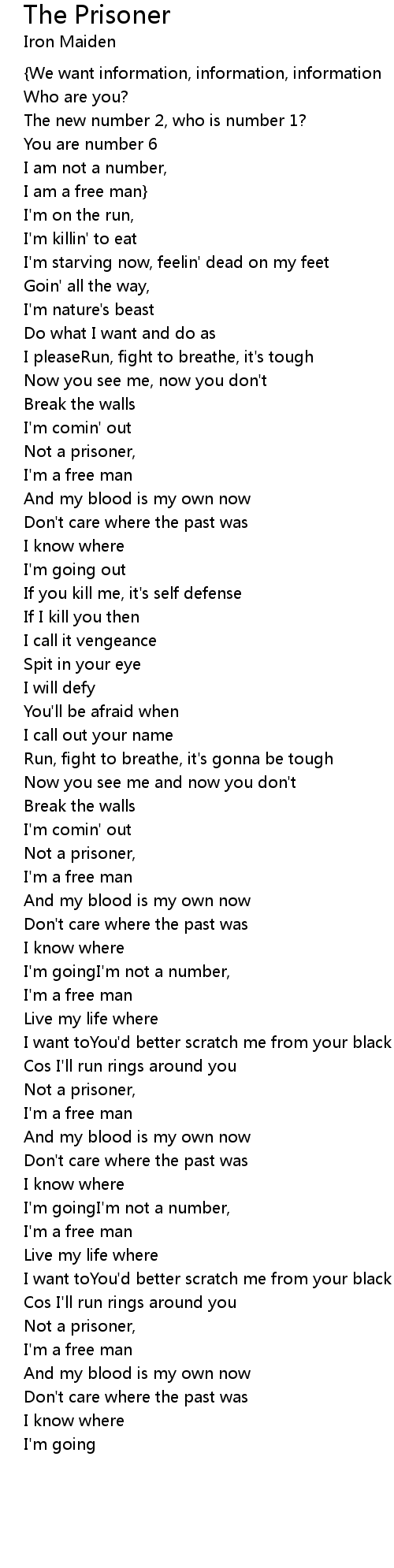 I'm goingI'm not a number, |