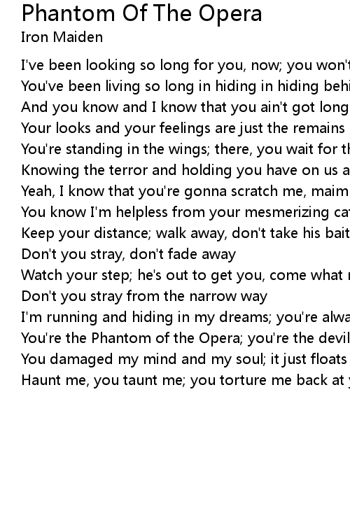 You're the Phantom of the Opera; you're the devil; you're just out to scare |