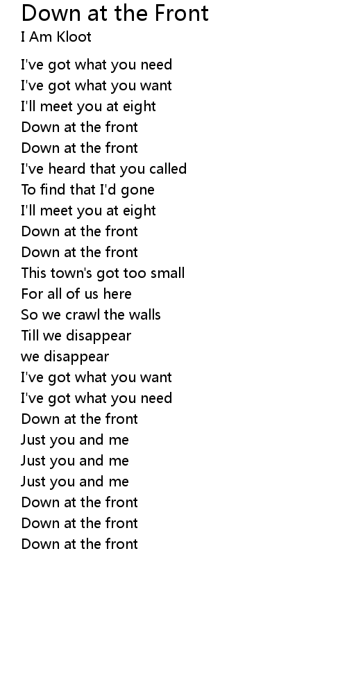| 歌曲 | Down at the Front |