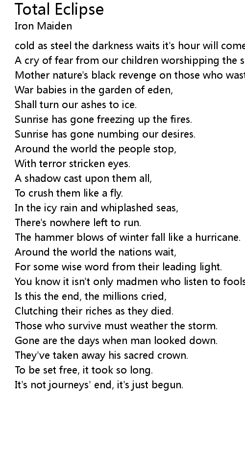 cold as steel the darkness waits it's hour will come. |