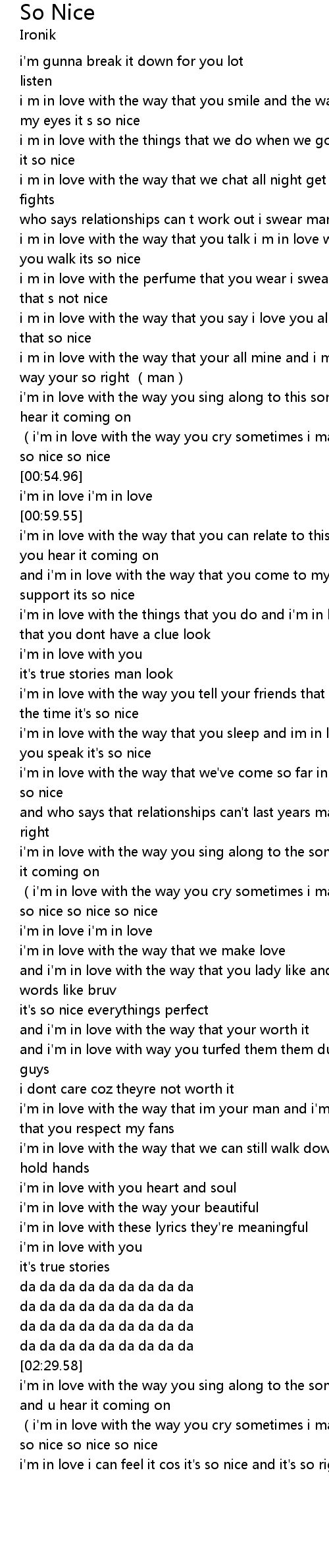 | [00:17.40] | i m in love with the way that you smile and the way that you look in my eyes it s so nice |
