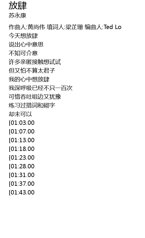 | [02:38.00][01:37.00] | 其实你心中也很想放肆 |
