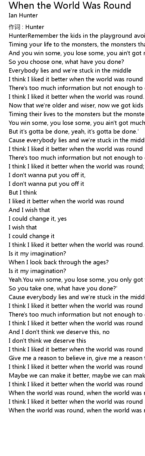 | 歌曲 | When the World Was Round |